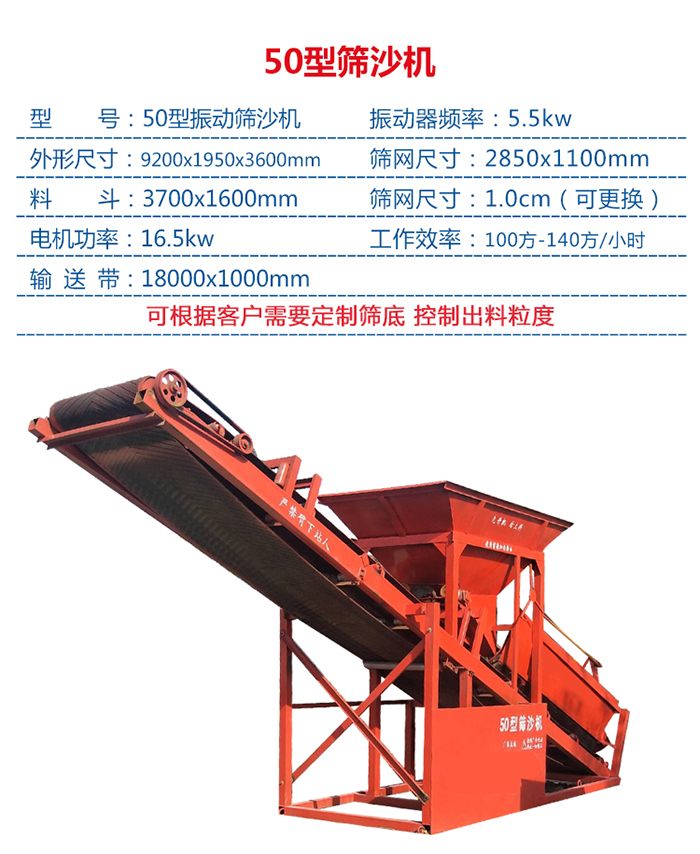 操作簡單,工作效率高,應(yīng)用在建筑行業(yè)與大小型沙廠的,結(jié)束了多年來用人工篩沙的歷史。依據(jù)自己的需要,可更換所需的篩網(wǎng),簡單易換、重量輕、便于,該機(jī)出沙率100%,不論干沙子還是濕沙,本機(jī)均能穩(wěn)定篩分,克服了由于沙子含水率高,人工難以篩分的時代。