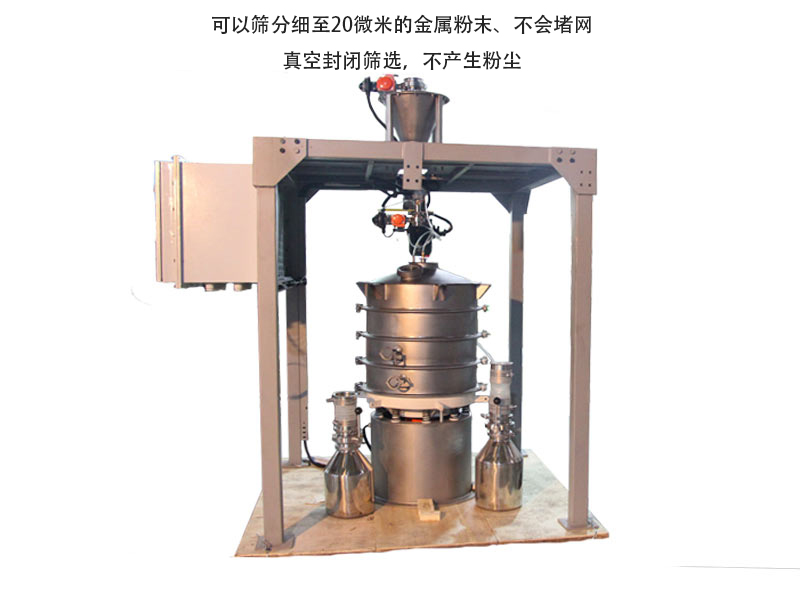 特點:與超聲波系統相結合,可以篩分20微米的金屬粉末,不堵網,真空封閉篩選,不產生粉塵